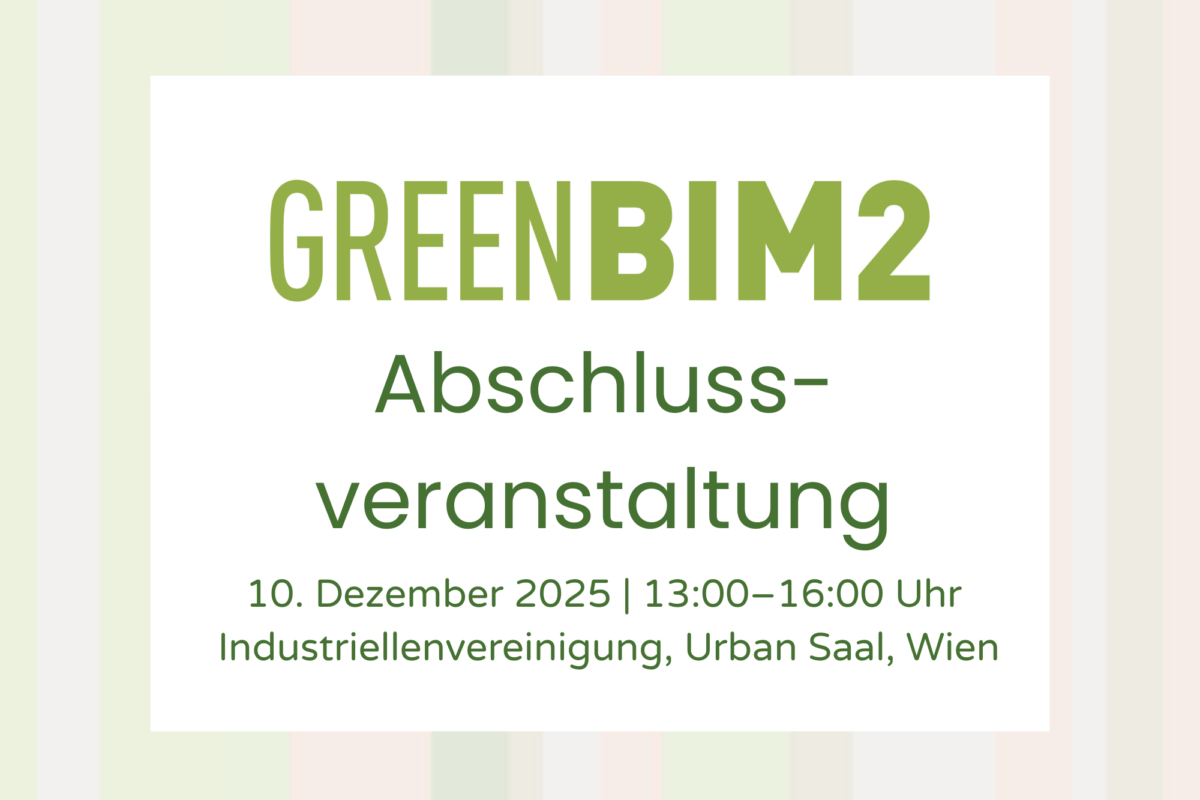 Einladung zur Green BIM 2 Abschlussveranstaltung am 10. Dezember 2025 in Wien! Jetzt anmelden.